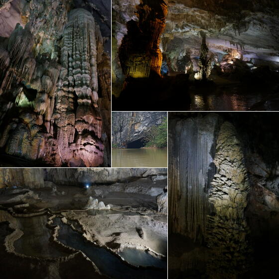 (左上&右上=フォンニャ洞窟、左下&右下=パラダイス洞窟、真ん中=フォンニャ洞窟の入口)